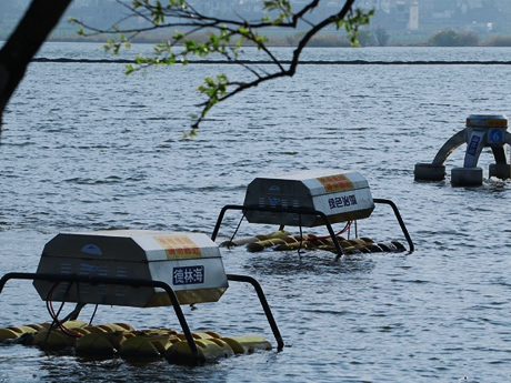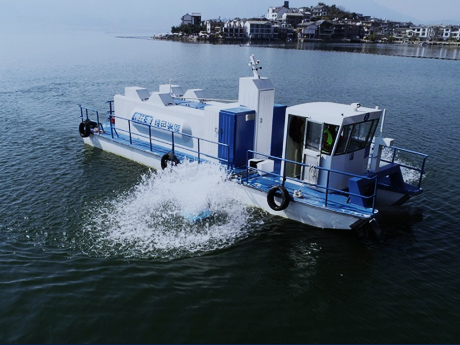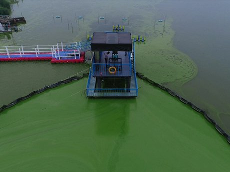 采用高效可調(diào)式渦井取藻、藍(lán)藻囊團(tuán)破壁、一體化二級(jí)強(qiáng)化氣浮等核心技術(shù),岸上站點(diǎn)藻水分離系統(tǒng)集成了藍(lán)藻打撈、脫氣沉降、氣浮分離、脫水等多個(gè)環(huán)節(jié)的技術(shù)和設(shè)備,形成了可規(guī)模化和工廠化處理藍(lán)藻的基站。適用于藍(lán)藻水華長期規(guī)律性、大范圍聚集區(qū)域的常態(tài)化應(yīng)急處置。