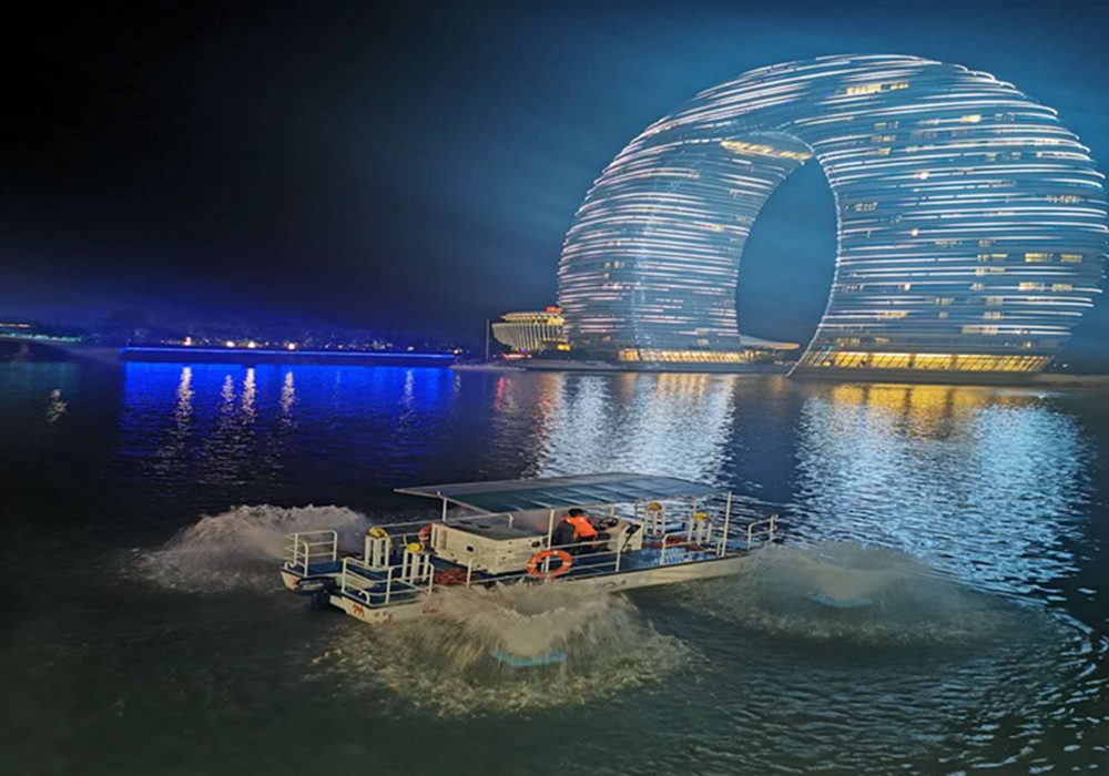 2020年6月4日至6月6日,長三角一體化地區(qū)主要領(lǐng)導(dǎo)座談會在湖州舉辦,為確保“不綠不臭”的藍藻防控目標,確保座談會的順利舉行,我司派出多功能控藻船,曝氣船,加壓控藻平臺,圍隔,推流器等專業(yè)設(shè)備進行防控,從5月份開始進行保障,完美完成目標,獲得了湖州各級政府的廣泛好評。