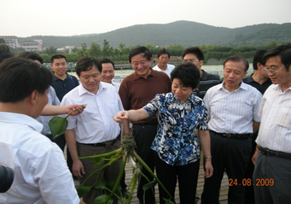 2009年8月24日,省委常委、副省長(zhǎng)黃莉新來(lái)到無(wú)錫市楊灣藻水分離站,省水利廳副廳長(zhǎng)陸桂華陪同檢查。無(wú)錫市水利局負(fù)責(zé)同志、廳水資源處負(fù)責(zé)同志陪同檢查。實(shí)地檢查藻水分離工程運(yùn)行,并聽(tīng)取有關(guān)情況匯報(bào)。