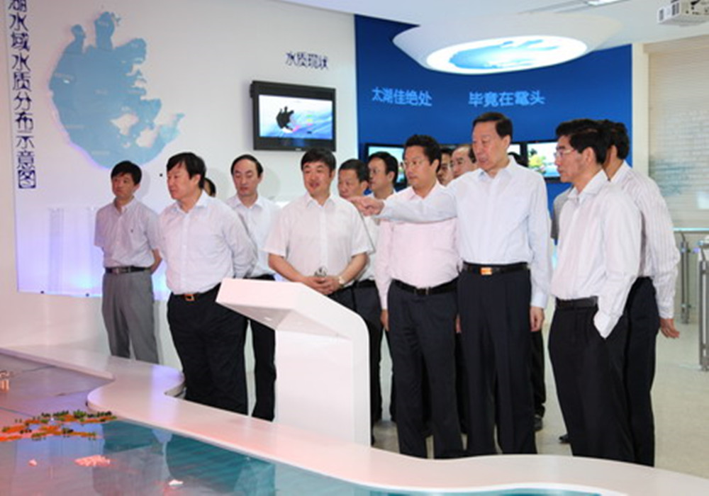 今年以來,太湖水質(zhì)總體穩(wěn)定,但隨著氣溫升高、日照增強(qiáng),太湖安全度夏仍然面臨著挑戰(zhàn)和壓力。羅志軍首先來到楊灣藻水分離站考察。當(dāng)天,楊灣太湖藍(lán)藻治理科技館和江蘇省水利物聯(lián)網(wǎng)示范應(yīng)用基地在這里揭牌落成。羅志軍興致勃勃地觀看了“感知太湖、智慧水利”技術(shù)演示。與中科院計算機(jī)所聯(lián)手合作,我市在國內(nèi)率先將先進(jìn)的物聯(lián)網(wǎng)技術(shù)應(yīng)用于太湖水利和環(huán)保領(lǐng)域,安放在湖中的傳感器,可將監(jiān)測到的水質(zhì)數(shù)據(jù)和藻密度等信息即時傳輸?shù)奖O(jiān)控中心,進(jìn)行數(shù)據(jù)比較分析后,即可通過智能調(diào)度實施藍(lán)藻打撈等程序。目前,一期工程已設(shè)立了10個監(jiān)控點(diǎn),有50艘打撈船舶進(jìn)入這個系統(tǒng)。通過聯(lián)網(wǎng),手機(jī)、電腦等遠(yuǎn)程終端也能共享數(shù)據(jù)信息。在演示現(xiàn)場,羅志軍通過手機(jī)接收到了湖水水質(zhì)的最新數(shù)據(jù),對這一具有自主知識產(chǎn)權(quán)的新成果給予了充分肯定。他說,物聯(lián)網(wǎng)技術(shù)在太湖治理中的最新運(yùn)用,為治水撈藻提供了一條新的有效的路徑。