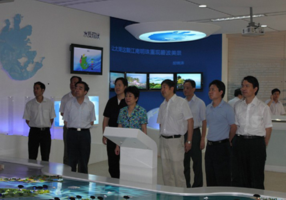 楊灣藻水分離站是無錫市環(huán)太湖八大藻水分離站之一,日處理藻漿能力達2000噸,藍藻治理科技館也在此建成??萍拣^通過展板、多媒體、聲光電等現(xiàn)代表現(xiàn)手段和展示方式,分太湖概況、科學治太、藻水分離、政策舉措、科普天地、生物農(nóng)業(yè)、關愛太湖等七大板塊,集中宣傳展示太湖治理工作。黃莉新仔細察看了每一個板塊,并認真觀看了“感知太湖智慧水利”一期工程項目演示,聽取了工程實施情況匯報。對于無錫市將智能傳感、地理信息系統(tǒng)等先進科技用于太湖藍藻監(jiān)測預警、打撈作業(yè)和資源化利用管理的做法,黃莉新予以了高度贊賞。她希望無錫市相關部門進一步深入研究,爭取在太湖防洪保安、資源管理和環(huán)境綜合整治等多種功能的結(jié)合上,實現(xiàn)智能化、現(xiàn)代化水利的更大突破。