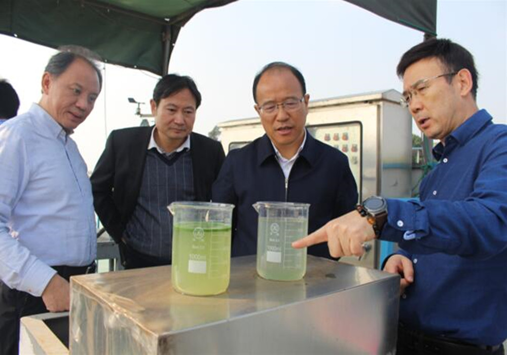 張市長(zhǎng)一行查看了原位控藻陷阱中控室并親臨原位控藻陷阱現(xiàn)場(chǎng),并聽(tīng)取了藻水分離站運(yùn)行情況,對(duì)我司在藍(lán)藻治理方面的工作給予了充分肯定。