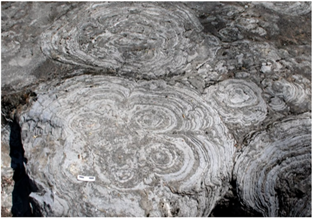 氧氣彌漫宛如死神過境,而死神面前,無人可以例外,不論他是紫色還是綠色。氧氣本身就是生命的大敵,因為氧氣會無差別地氧化構(gòu)成生命的物質(zhì)基礎、有機質(zhì),但這還只是個開始,氧氣還毀滅了大氣中的甲烷,而甲烷是一種比二氧化碳還要強二十多倍的溫室氣體。剛巧在25億年前左右地球的火山活動又陷入了一個低谷期,于是地球氣溫驟然暴跌,進入了自地球誕生以來最猛烈的一次全球變冷——休倫冰河期。極寒的封凍終究寂滅了世間的一切紛紛擾擾,末日之戰(zhàn),沒有贏家。曾經(jīng)壯觀的菌毯從此深埋地下,經(jīng)過數(shù)十億年地址變遷演變成一種叫做“層疊石”的化石,宛如一座座墓碑,無聲地祭奠著曾經(jīng)屬于他們的紫色王朝。