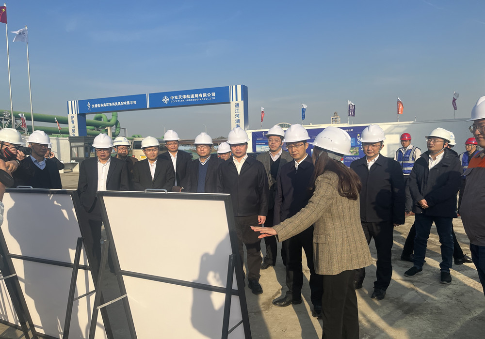 2021年11月16日,蘇州市市長吳慶文赴相城區(qū)西塘河調(diào)研我司高藻期蘇州城區(qū)水源保障工程,水務(wù)局局長陳習慶陪同調(diào)研。吳市長詳細了解了西塘河項目的主要內(nèi)容及建設(shè)進度,認真查看了作業(yè)工況,并聽取了我司相關(guān)工作人員就西塘河項目推進落實情況的介紹。吳市長對我司在藍藻治理工作中所做的貢獻給予了充分肯定,對我司未來發(fā)展賦予厚望。