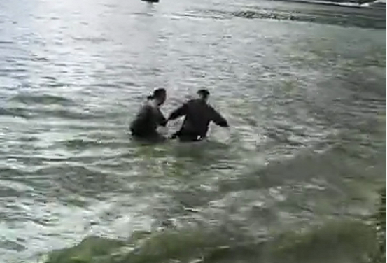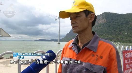 此時(shí),在湖邊清理湖面的昆明德林海環(huán)??萍加邢薰締T工段宏波、翁光清和實(shí)習(xí)員工杜奕銳發(fā)現(xiàn)這一情況立刻跑過去,大聲勸說。同時(shí)在工作群中通報(bào)此事,請(qǐng)求附近的同事支援。另外一名同事同時(shí)報(bào)警。而在附近工作的楊林得知這個(gè)事情后,立馬騎電動(dòng)車趕來。