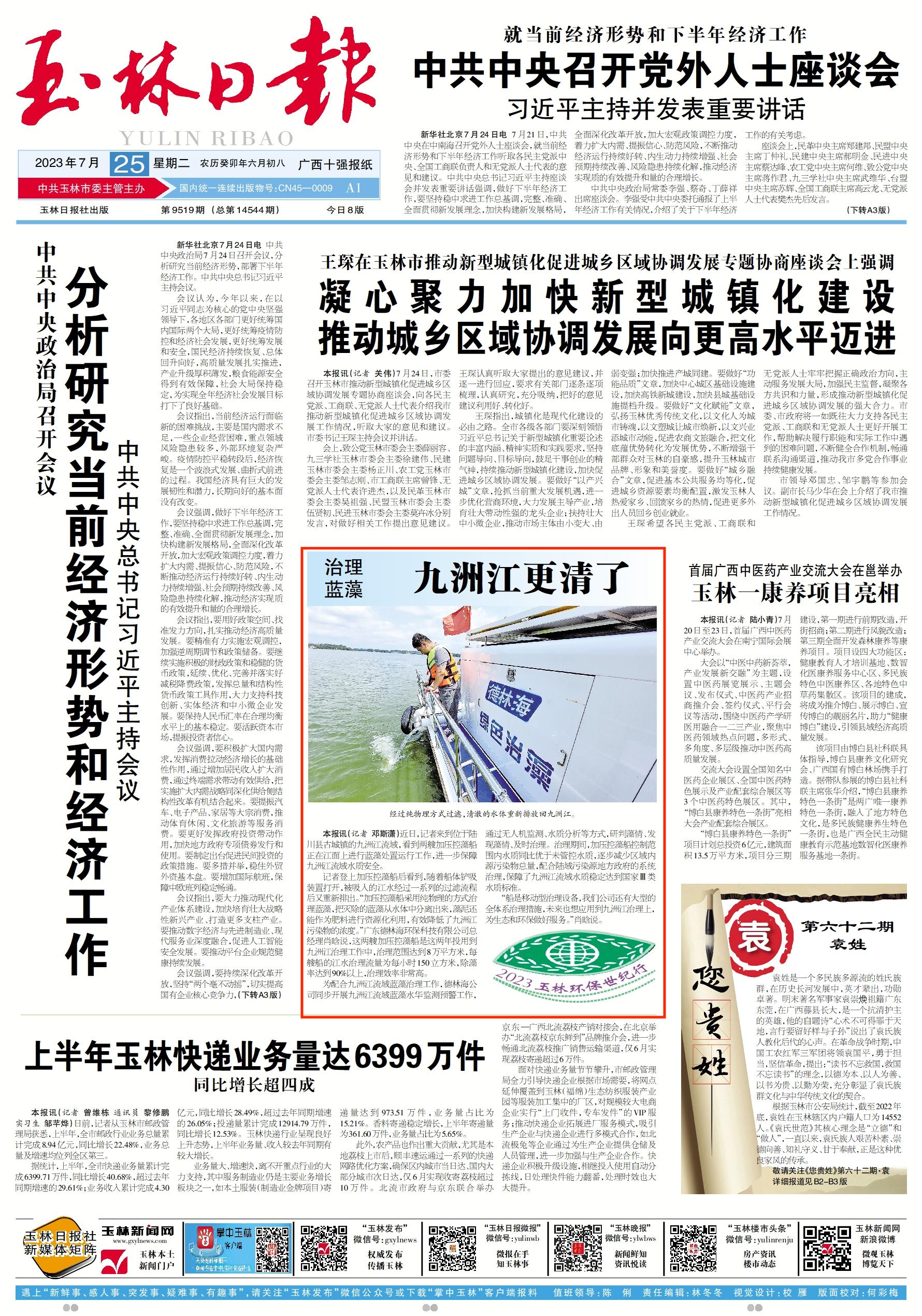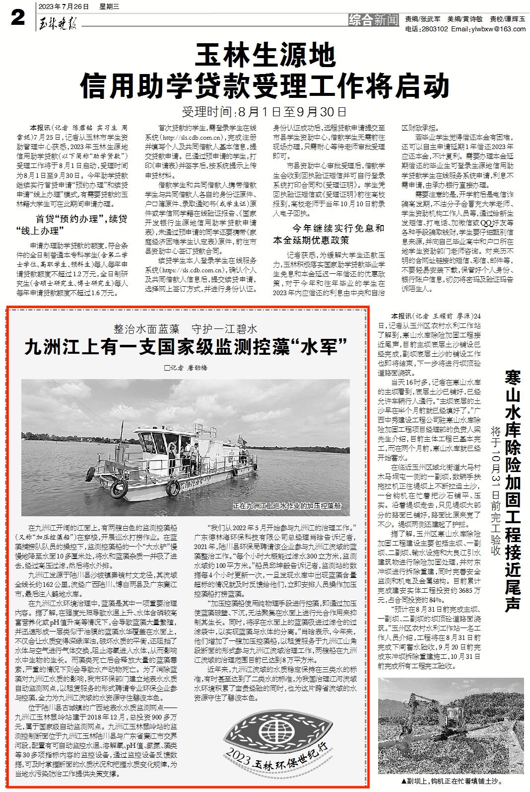 《玉林日?qǐng)?bào)》頭版報(bào)道《治理藍(lán)藻——九洲江更清了》