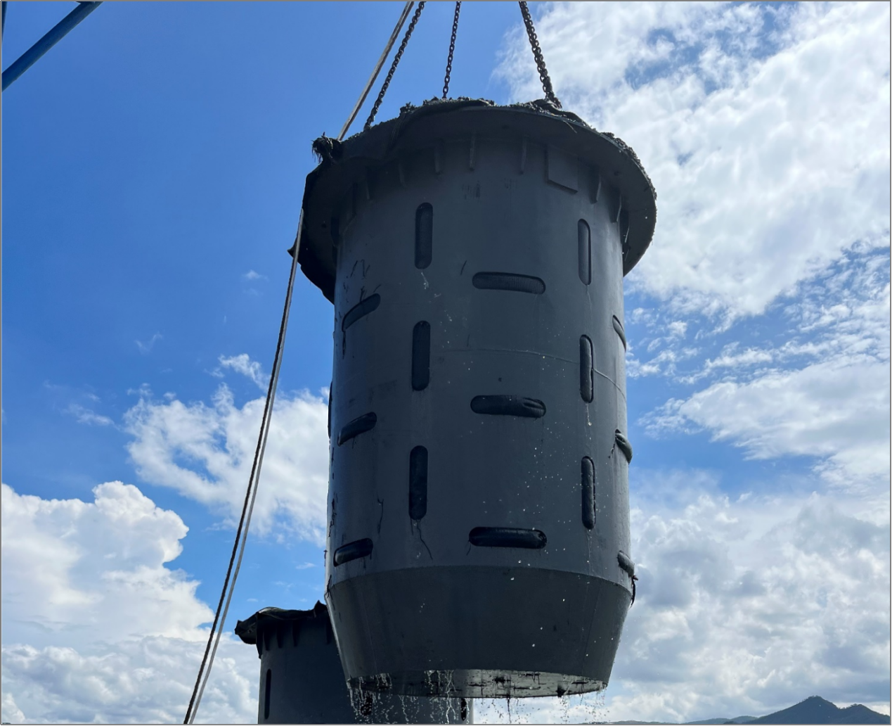 透水提籃取泥后的實景:尾水清澈可直接回湖