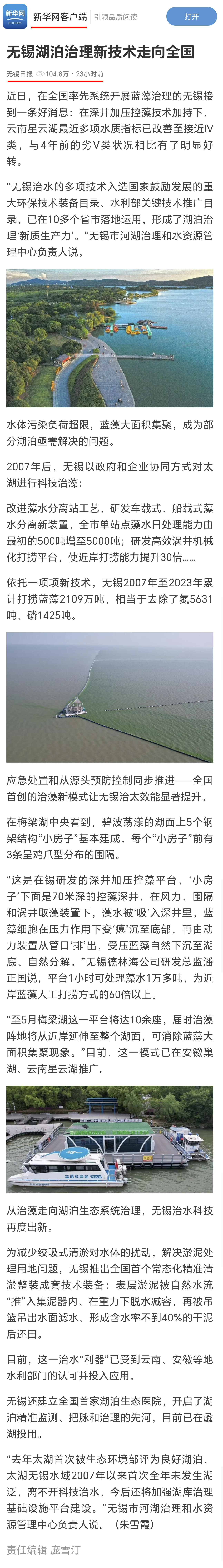 新華網(wǎng)轉(zhuǎn)載《無錫湖泊治理新技術(shù)走向全國》 瀏覽量突破百萬
