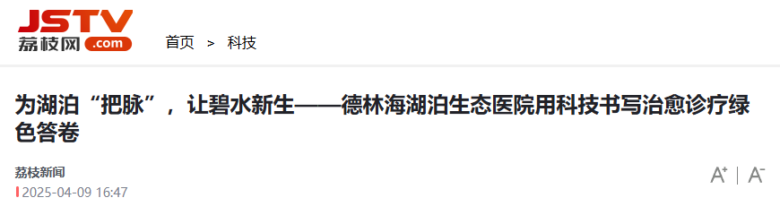 江蘇廣電:為湖泊“把脈”,讓碧水新生——德林海湖泊生態(tài)醫(yī)院用科技書寫治愈診療綠色答卷