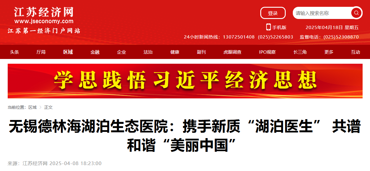 江蘇經(jīng)濟網(wǎng):無錫德林海湖泊生態(tài)醫(yī)院:攜手新質“湖泊醫(yī)生” 共譜和諧“美麗中國”
