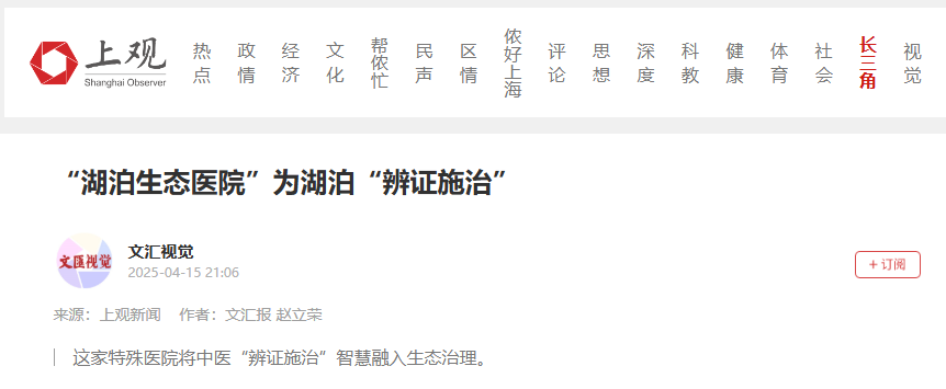 《文匯報》:“湖泊生態(tài)醫(yī)院”為湖泊“辨證施治”