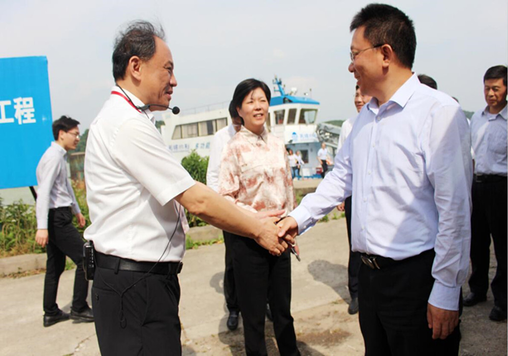 2020年5月22日,江蘇省副省長趙世勇、江蘇省生態(tài)環(huán)境廳秦亞東副廳長一行來無錫視察太湖安全度夏工作,蔣敏副市長,馬良副秘書長、市生態(tài)環(huán)境局彭紅宇局長,市水利局張海泉局長及我司領(lǐng)導(dǎo)陪同視察。