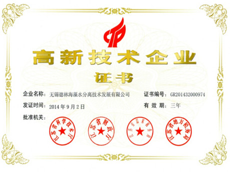 德林海公司成為首家獲得高新技術(shù)企業(yè)認(rèn)定的治藻公司