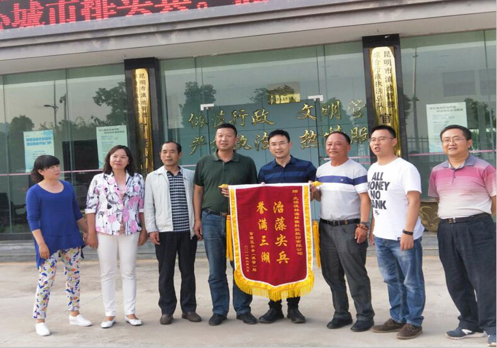 昆明市滇池管理局官渡分局,為表彰和感謝德林海公司在2018年滇池的藍藻治理工作中所做出的努力和取得的成效,特頒發(fā)錦旗和感謝信。